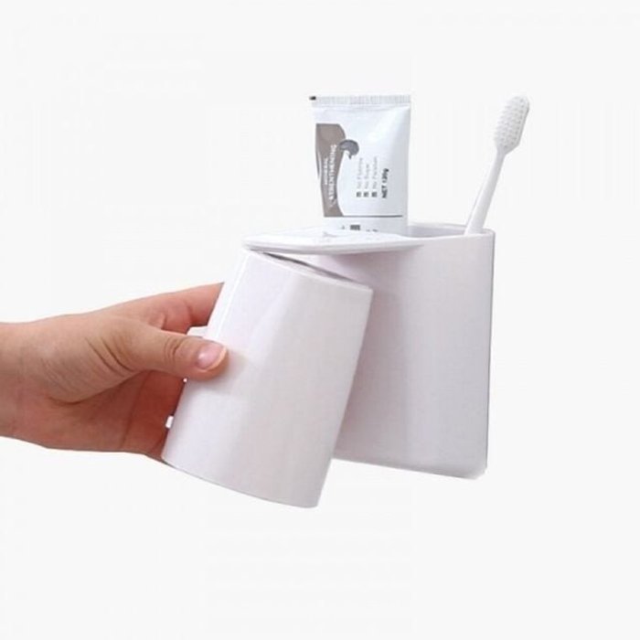 뽀송홈 양치컵이 들어있는 무타공 칫솔꽂이