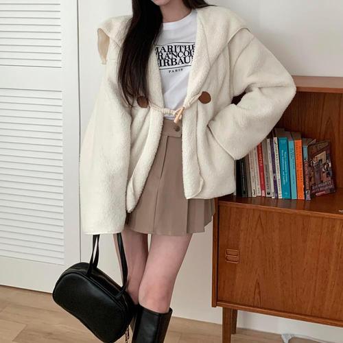 ORZQU 여성 캐주얼 디자인감 포근 양털자켓 겨울 오버핏 패션 양털후드집업