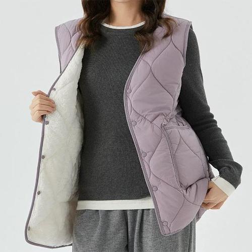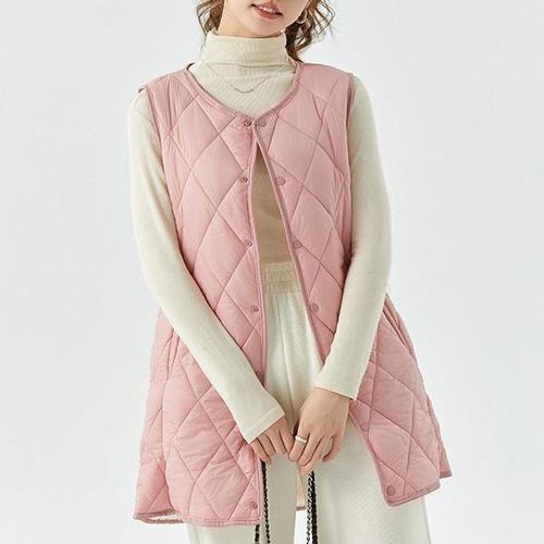 [패션시그널]스냅버튼 양털안감 롱패딩 조끼가디건 CN2770