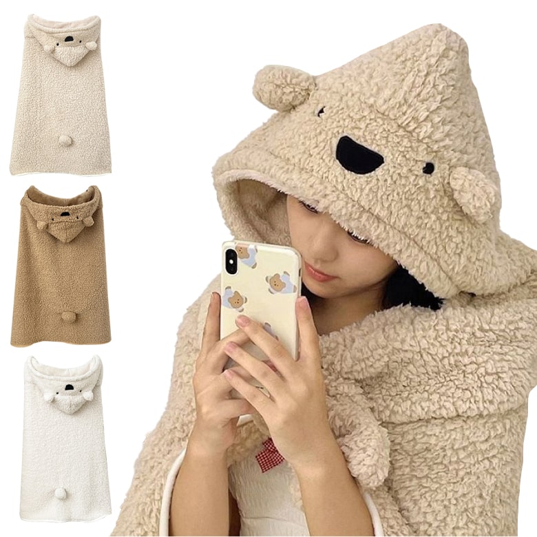 1+1 입는담요 양털 망토 후드 곰돌이 블랭킷 무릎 담요 OFS-DMCAPE01