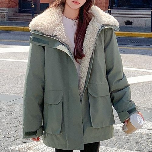 여자 따뜻한 데일리룩 뽀글 양털 야상 패딩