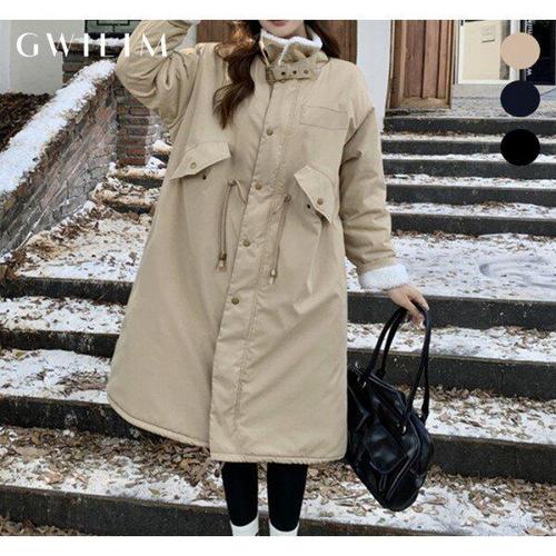 캐주얼 루즈핏 스탠드 카라 양털안감 미들길이 야상잠바 재킷 겨울아우터 꾸안꾸 데일리룩