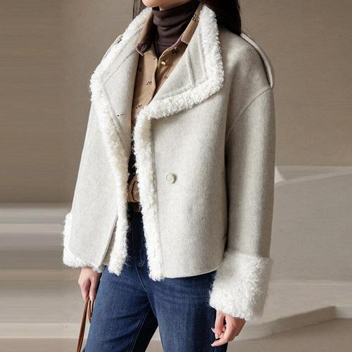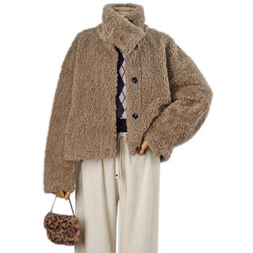 [스타일온미][스타일온미] 로하즈 포근 울 블렌딩 뽀글 양털 트리밍 더블 하이넥 핸드메이드 자켓