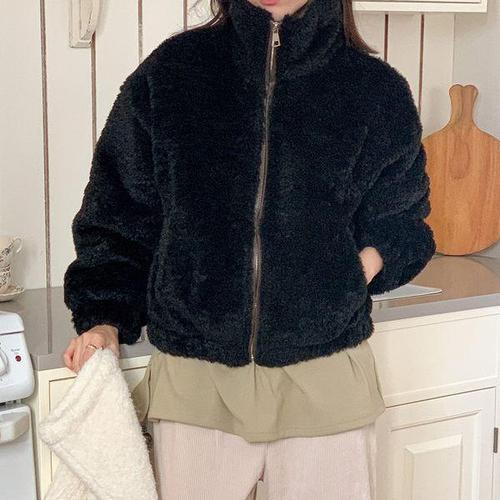 [다잇템]여자 박시핏 양털 폴라넥 속누빔 퍼자켓 점퍼
