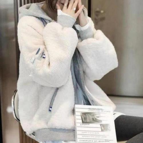 점퍼 뽀글이 레이어드 겨울철 데일리 후드 양털 여성 WFLQCA5
