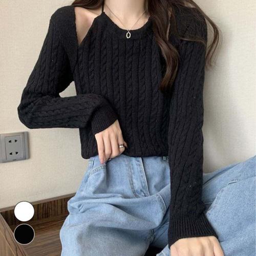 [셀럽하우스]여성 RYZN7627 홀터넥 볼레로 어깨트임 여리 꽈배기 긴팔 니트