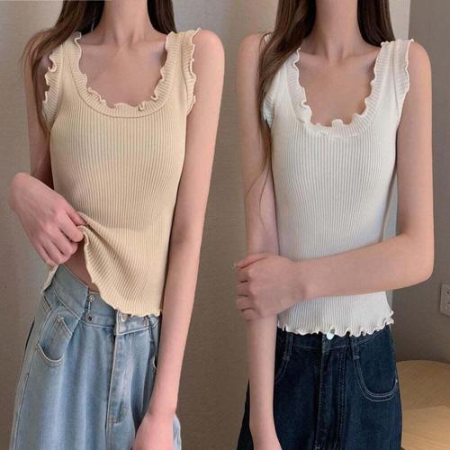 [셀럽하우스]여름 BNCW5704 U넥 어깨 프릴 골지 민소매 세미크롭 나시티