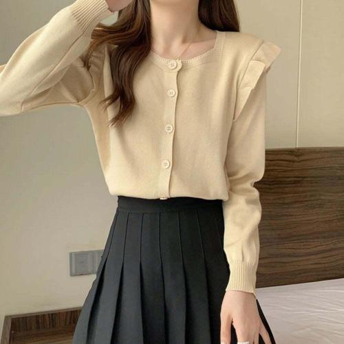 [셀럽하우스]여성 WYXS7202 크롭한 기장감 어깨 프릴 포인트 니트 가디건