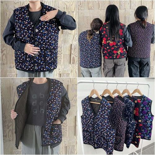 TEMU 여성 밧줄 조끼 밍크안감 털안감 겨울 패션 상의 도톰한 꽃무늬 김장룩 꽃조끼 촌캉스 할머니조끼 누빔 따뜻한 겨울조끼 플라워
