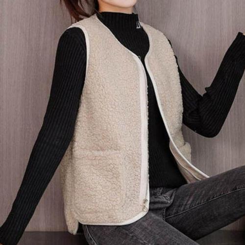 [옷자락]여성 루즈핏 따뜻한 퍼 양털 라운드넥 버튼 포켓 조끼