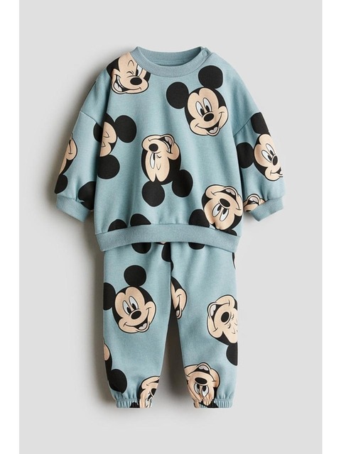 [에이치엔엠] 프린트 스웨트 2피스 세트 더스티 터쿼이스/미키 마우스 1295328008