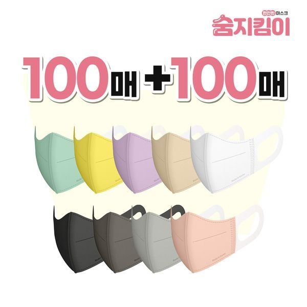 숨지킴이 100매 블랙 컬러 성인용 어린이용 새부리형 국내생산 일회용마스크
