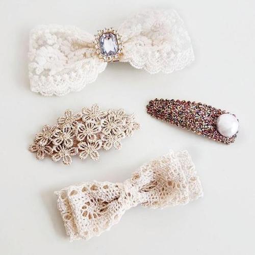 [셀러허브_여성트랜드패션]유아헤어핀 큐빅 레이스 헤어핀 4종세트