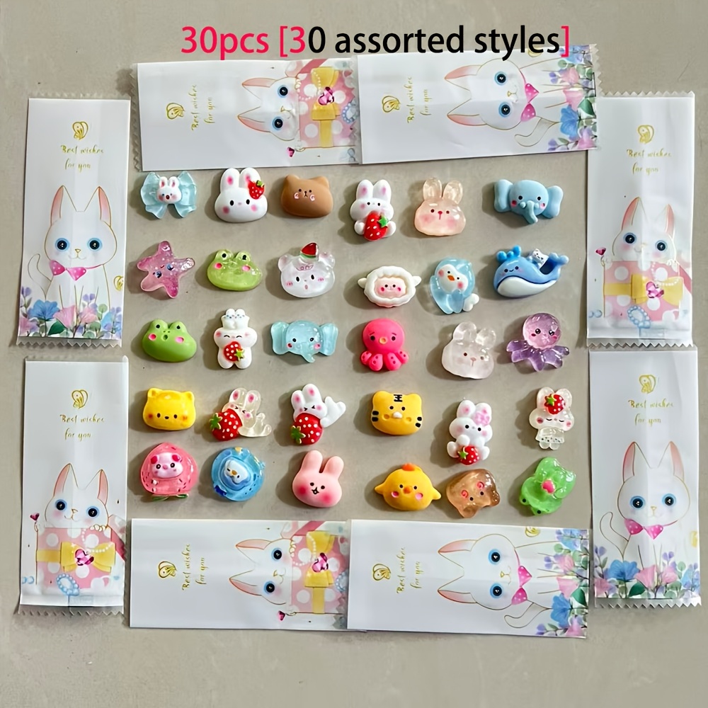 TEMU 30개 카툰 광택 미니 토끼 레진 주얼리, 귀여운 아트 네일 장식 패치, DIY 공예용, 헤어 클립, 폰 케이스 액세서리, 스크랩북 장식|네일