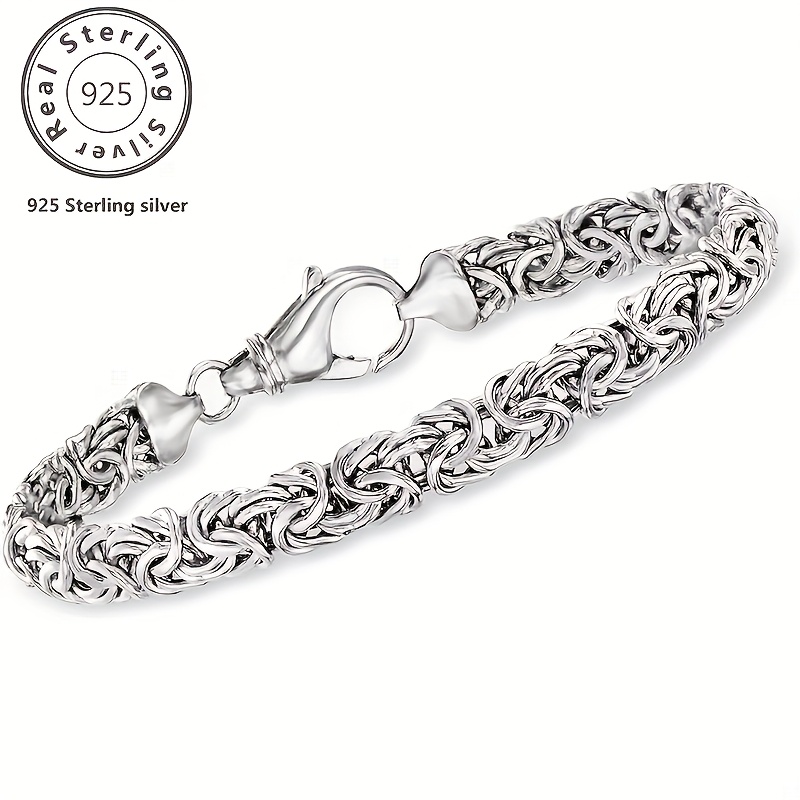 TEMU 1개 우아한 925 스털링 실버 팔찌, 복잡한 꼬임 디자인 - 빈티지 스타일, 일상 및 파티용으로 완벽, 여성용 스테인리스 스틸 팔찌, 체인 웨이브 팔찌, 여성용 팔찌