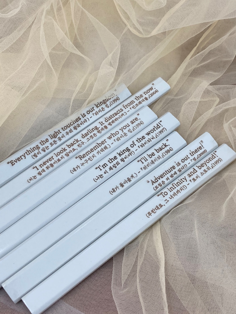 영화 애니메이션 명대사 문구 각인 목공 납작 연필 제작