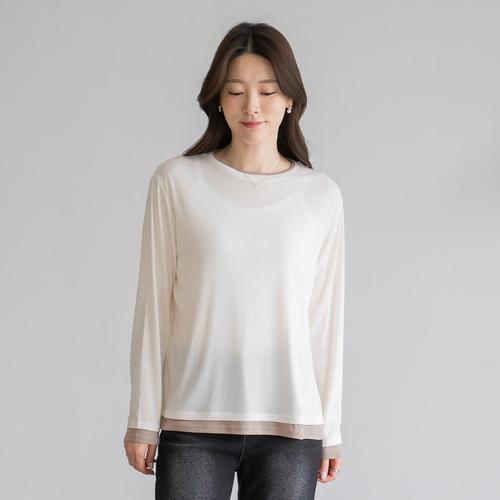 엄마옷 마담4060 베이직배색티셔츠 -QTE2602032-