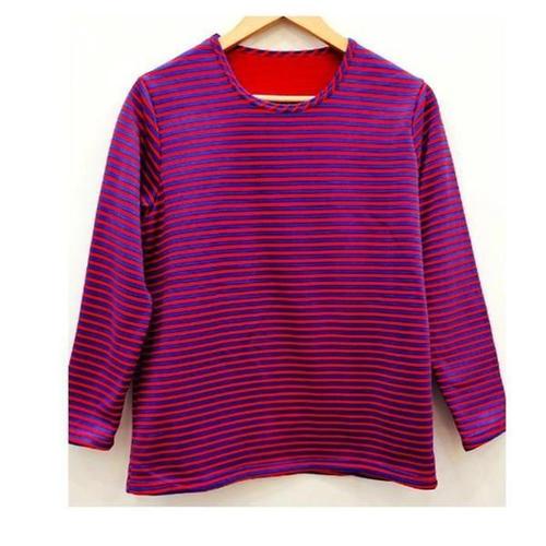 [셀러허브_여성트랜드패션]ONM 스트라이프 엄마 티셔츠 할머니 라운드 기모티
