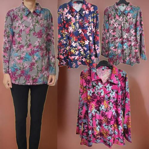 [옷자락]여자 겨울 방한 엄마 할머니 꽃무늬 기모 카라 티셔츠