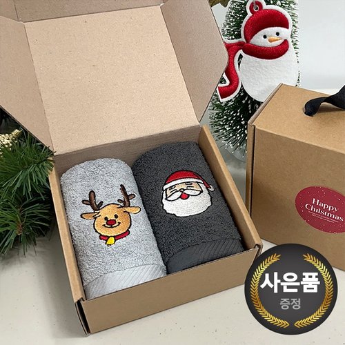 송월타월 항균 몽글 크리스마스 고리 핸드타올 2매 크라프트세트