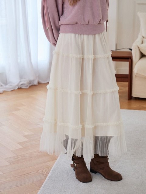 [에고이스트] 로맨틱티어드 밴딩 롱스커트 ER4OSK01