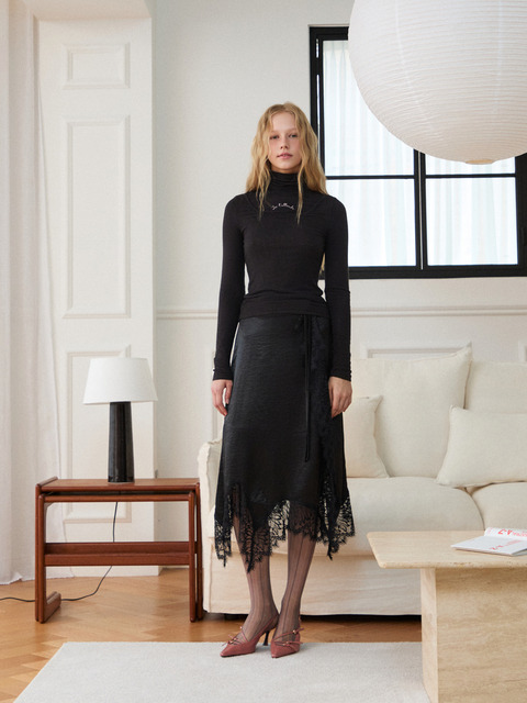 [에고이스트] [BLUE LABEL] 레이스패치 사틴스커트 ER4OSK02