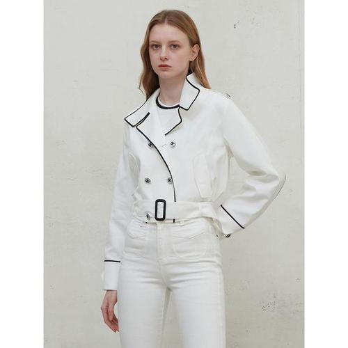 [에고이스트]밴드넥 벨티드 숏 트렌치 자켓 화이트 EP1WC760