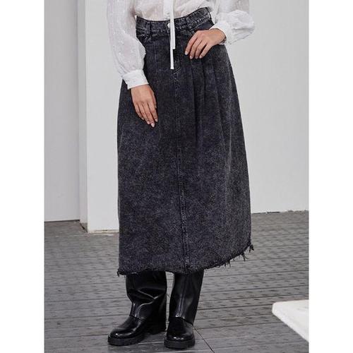 [에고이스트]다크 그레이 밑단 디스트로이드 롱 데님 스커트 EQ3ODS02