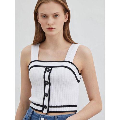 [에고이스트]배색 포인트 와플 뷔스티에 화이트 EP2KV362