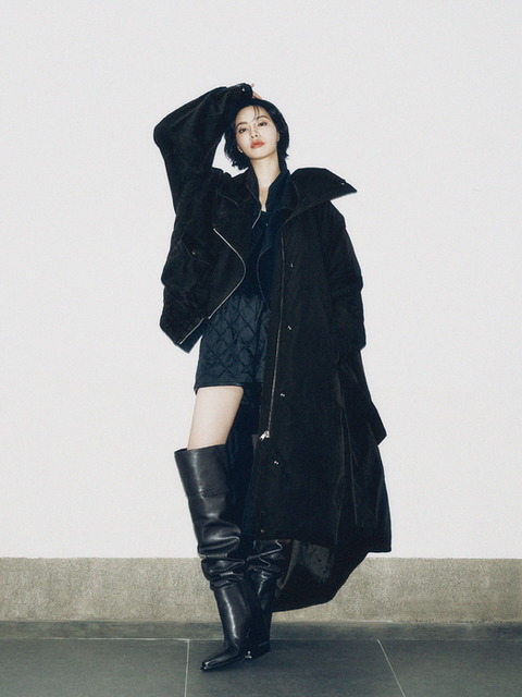 엔니튜드 25FW 울 블렌드 후드 레이어드 가디건