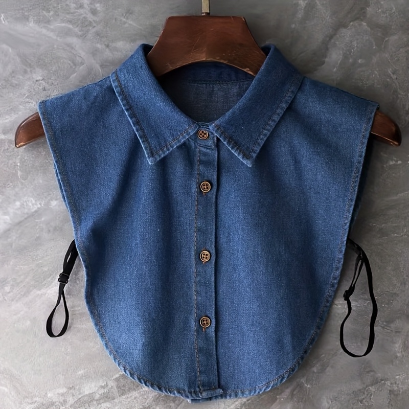 TEMU 여성용 우아한 칼라 셔츠 칼라 - 탈착식 하프 셔츠 칼라, 버튼 앞면, 단색 (네이비) - 세탁기 사용 가능 겨울 & 봄 레이어링, 오피스 파티 캐주얼 의상 - 다용도 의류 액세서리, 칼라 셔츠, 파티 복장