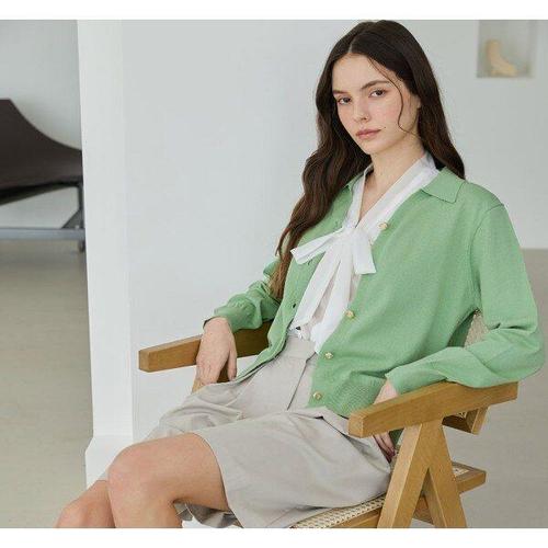 [엘루아][엘루아] 에르베 실크 블렌딩 스프링 니트 자켓_애플그린