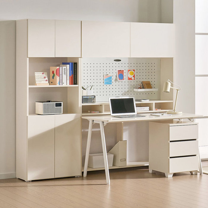 에보니아 카이 책상 책장 서랍장 학생 성인 올인원 D형 (테이블1600+책장600+책장1200+3단서랍장)