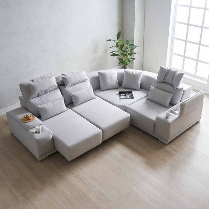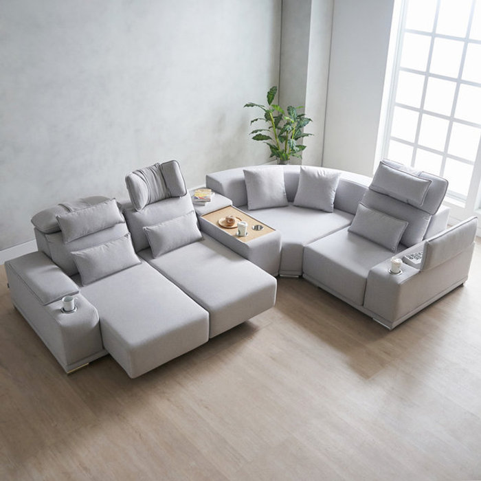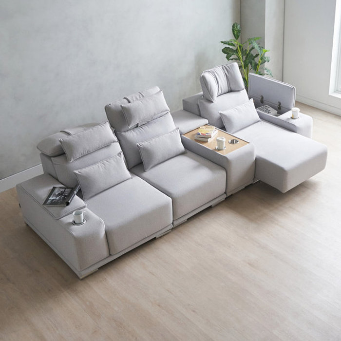 삼익가구 레스트인 헤드틸팅 모션 확장형 슬라이딩 홈바형 리클라이너 소파, 라이트베이지