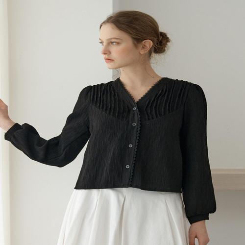 [미니멈에브리데이][미니멈에브리데이] V넥 핀턱 트리밍 버튼 블라우스 (EC1BA018D)
