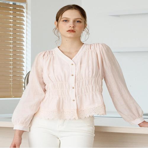 [미니멈에브리데이][미니멈에브리데이] 로맨틱 셔링 V넥 버튼 블라우스 (EC1BA015D)