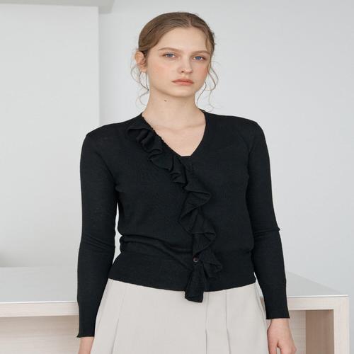 [미니멈에브리데이][미니멈에브리데이] 드레이프 러플 V넥 니트 가디건 (EC1CK010D)