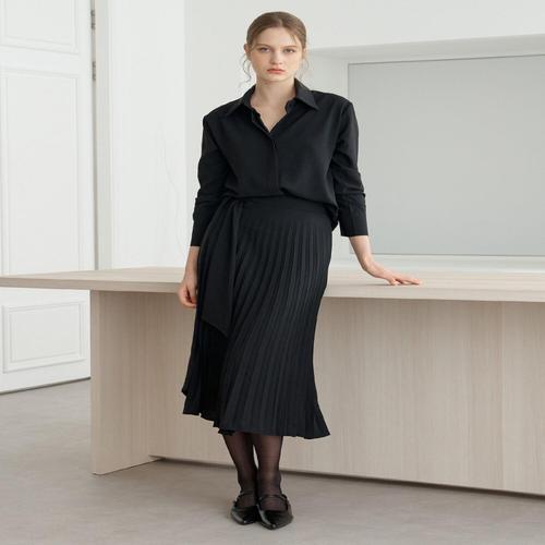 [미니멈에브리데이][미니멈에브리데이] 긴팔 셔츠 플리츠 랩 스커트 셋업 (EC1OW006D)