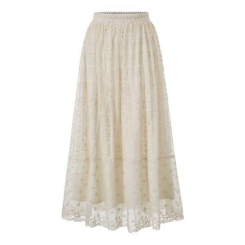 [미니멈에브리데이][미니멈 에브리데이]페미닌 자수 패턴 레이스 밴딩 롱 스커트 (EC1WH002D)