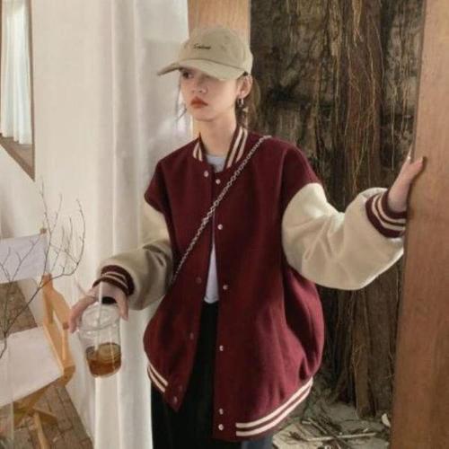 봄부터 겨울 신축성 좋은 여성 배색 기모 야구 점퍼