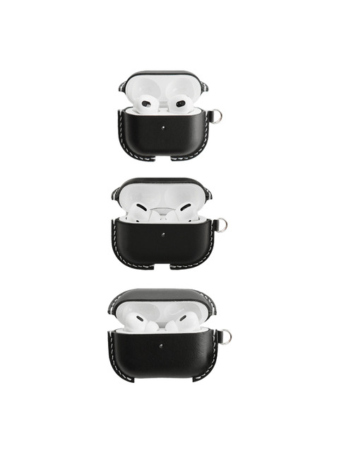 [OFM79RR7]에어팟 가죽 하드 케이스 풀커버 Black