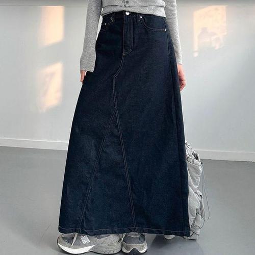 샵플릭스 여성용 봄여름가을 데일리 A라인 데님 스커트 롱 청치마