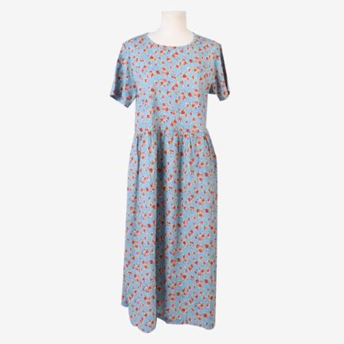 [다잇템][다잇템] 여성용 패턴 잠옷 에이라인 롱 면원단 반소매 소프트핏 원피스_23109328_588872