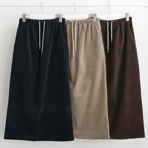 [다잇템_패션]여성 골덴 슬릿 에이라인 긴치마 끈밴딩 가을용