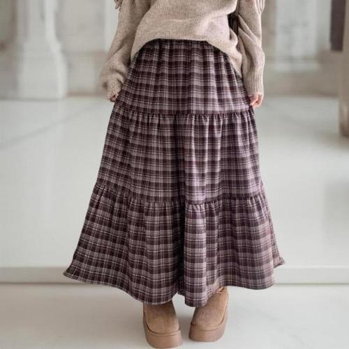 [하프클럽/]여성 격자 롱 티어드 에이라인 후레아 원피스
