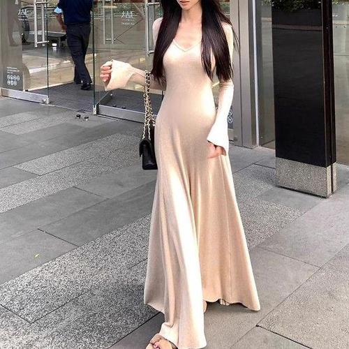 [다잇템]여자 롱 클래식 슬림 무지컬러 에이라인 원피스