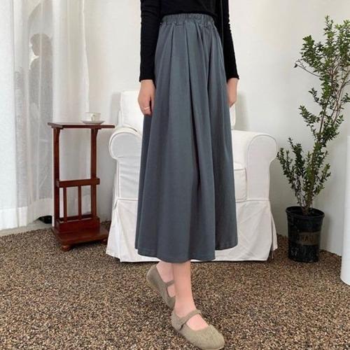 여성 가을 겨울 롱 스커트 빅 사이즈 데일리룩 루즈핏 밴딩 A라인 플리츠 롱 치마