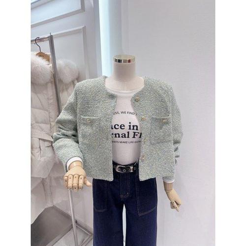 ab.fz 골드버튼 트위드 노카라 자켓 (ABXZ4HJ03J) US