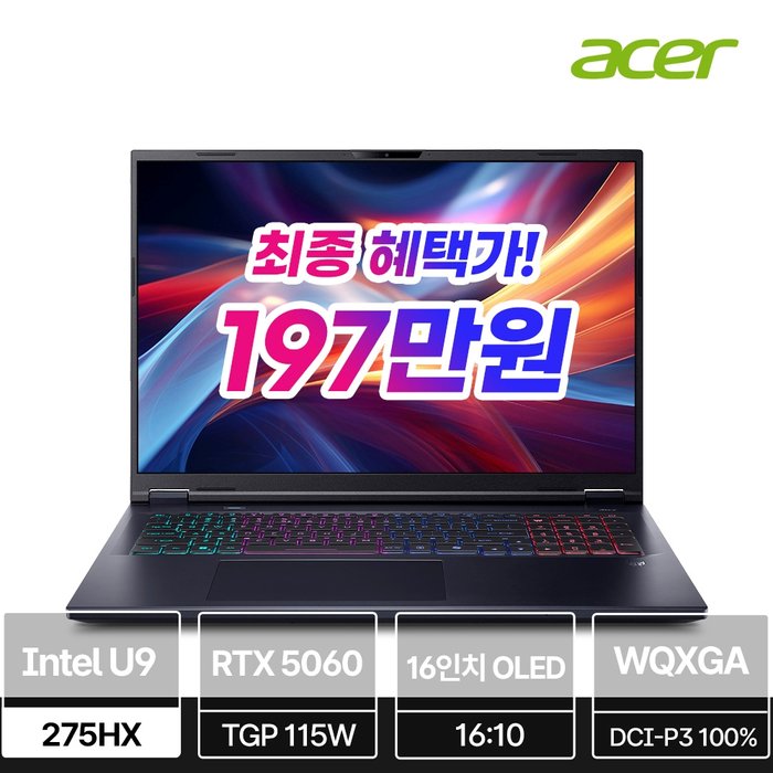 acer 프레데터 헬리오스 네오 16S 슬림 AI PHN16S-71-97L7 (Win11 Home) RTX5070 게이밍 노트북