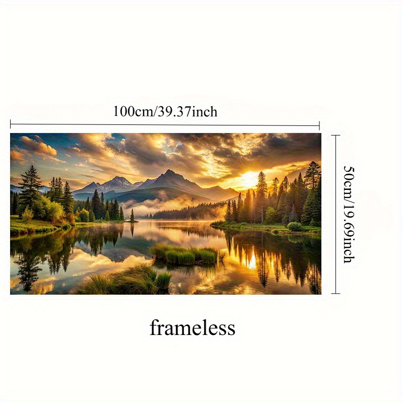 TEMU 프레임리스 벽걸이 액자 1개, 20 x 40인치 또는 50 x 100cm의 대형 캔버스 프린트. 황금빛 일출, 눈 덮인 산, 반사하는 물이 특징이며, 거실 또는 침실의 모던 데코에 완벽합니다. 캔버스 벽걸이 액자